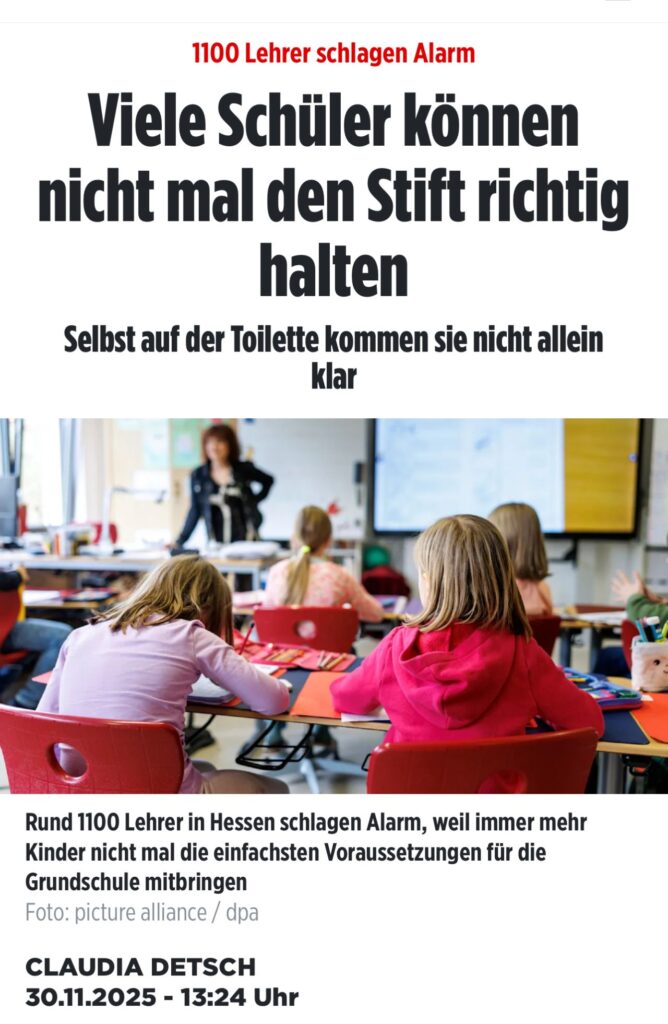 Nach dem IQB-Schock kommt jetzt der nächste Alarmruf: 1100 Lehrer melden, dass viele Kinder heute nicht einmal mehr einen Stift halten, Schuhe binden oder allein zur Toilette gehen können. Von Sprache, Motorik oder Konzentration ganz zu schweigen.