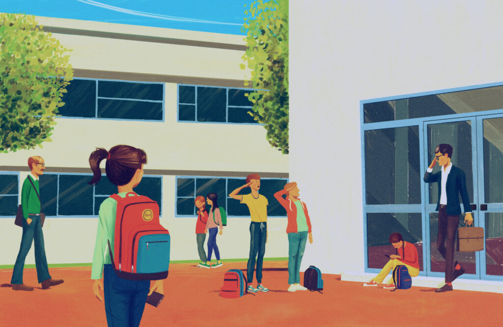 Vor dem Vorstellungsgespräch habe ich ergoogelt, dass die Schulleiterin bei den Grünen Lokalpolitik macht. Dementsprechend behutsam erkundige ich mich, wie es denn aussehe mit Gewalt, Diskriminierung, Homophobie, Antisemitismus, Respektlosigkeiten. Und gibt es Probleme mit dem Islam?