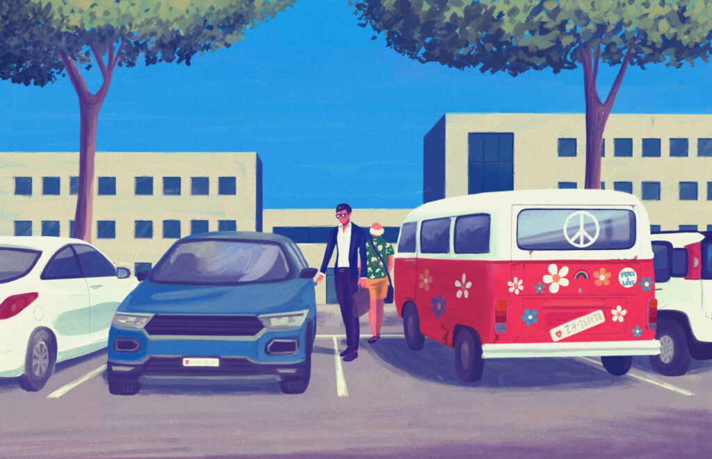 Es ist die einzige Schule, die ich sehen sollte, die einen Lehrkörper mit klarem Linksdrall hat. Und den Grund dafür muss ich nicht lange suchen: Es reicht, der Reggae-Musik zu folgen, die auf dem Korridor zu hören ist. Diese dringt aus dem Schulleiterbüro, dessen Türe immer geöffnet ist. Und in diesem Büro sitzt Urs, wohl kurz vor der Pensionierung, untersetzt, Hawaiihemd, Sandalen und in irgendeinem Hippie-Traum hängengeblieben. Mein sechsjähriger Sohn hätte keinen Respekt vor ihm, und ich könnte es ihm nicht übelnehmen.