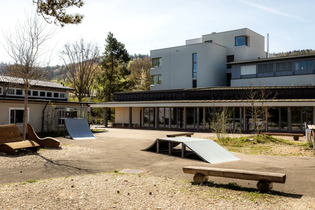 Legende Beitragsbild: Ein Neubau soll das Schulhaus Hofmatt in Gelterkinden ergänzen. Über das Preisschild ist ein politischer Kampf entbrannt. (Foto: Kostas Maros)