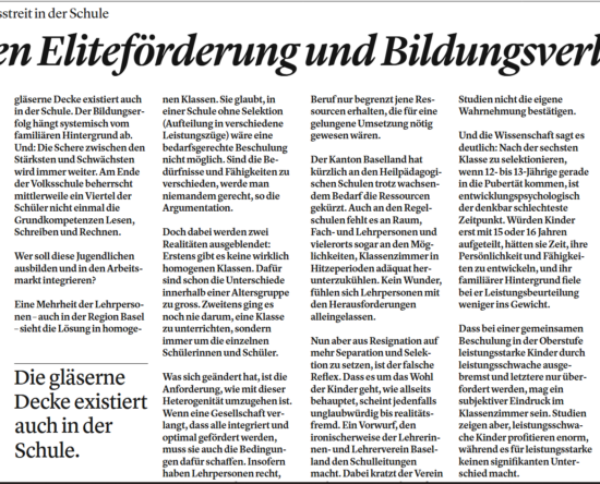 Die Debatte um eine chancengerechte Volksschule reisst nicht ab. Jüngst erschienen in den Schweizer Zeitungen wieder Artikel mit entsprechend reisserischen Titeln, die sich auf die Berner TREE-Studie berufen. So zum Beispiel in der Basler Zeitung: “Schulkarriere hängt vom Elternhaus ab”, “So macht man Kinder kaputt” oder “Das Schweizer Bildungssystem ist ein Chancenvernichter”. (1) Eine Entgegnung von Condorcet-Autor Felix Schmutz.